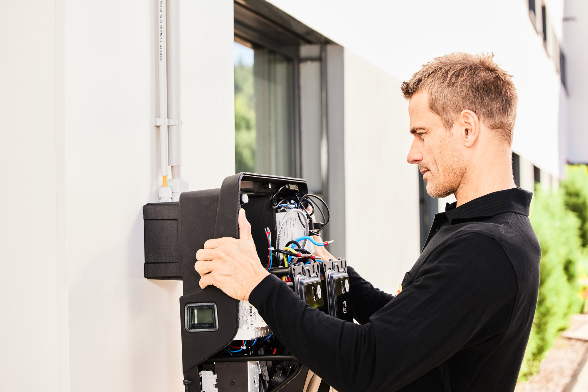 Avec AMTRON® Professional Twincharge, vous gagnez du temps et vous installez en toute sérénité. Tout est pensé pour votre sécurité : disjoncteurs différentiels, disjoncteurs de ligne et surveillance du courant résiduel DC sont déjà intégrés dans la borne murale. Vous posez, vous raccordez et votre installation est prête à fonctionner, en toute fiabilité.