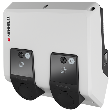 L'AMTRON® Professional Twincharge est notre nouvelle double borne murale spécialement pensée pour recharger plusieurs véhicules électriques en même temps, dans des espaces semi-publics ou publics.