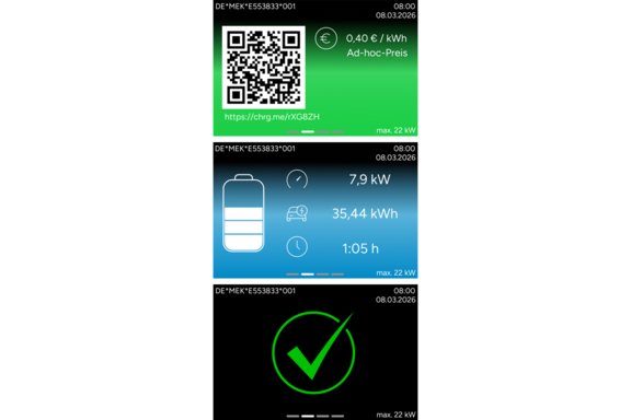 Nutzerinnen und Nutzer erhalten rund um den Ladevorgang stets klare Instruktionen und Informationen. Zudem sind die dynamischen QR-Codes für die Autorisierung ein Plus an Sicherheit, da sie besser vor Manipulation durch Dritte schützen als statische QR-Aufkleber.