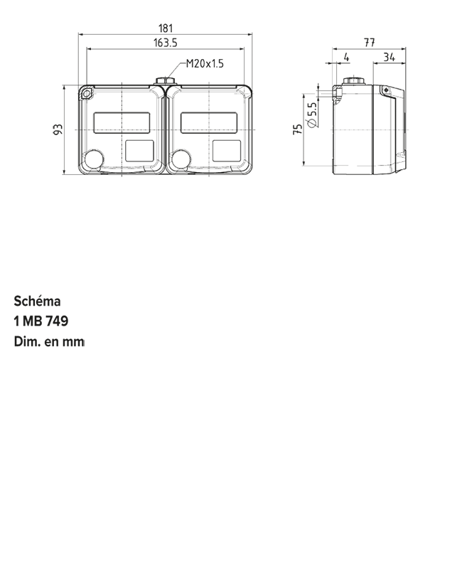 • 2 socles de prises de courant CEE 16 A, 5 p, 6 h, 400 V