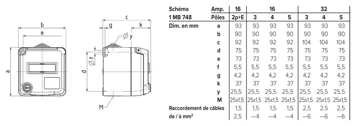 Socle de prise de courant mural Cepex avec serrure et champ d’étiquetage, gris clair 4863 avec IP54