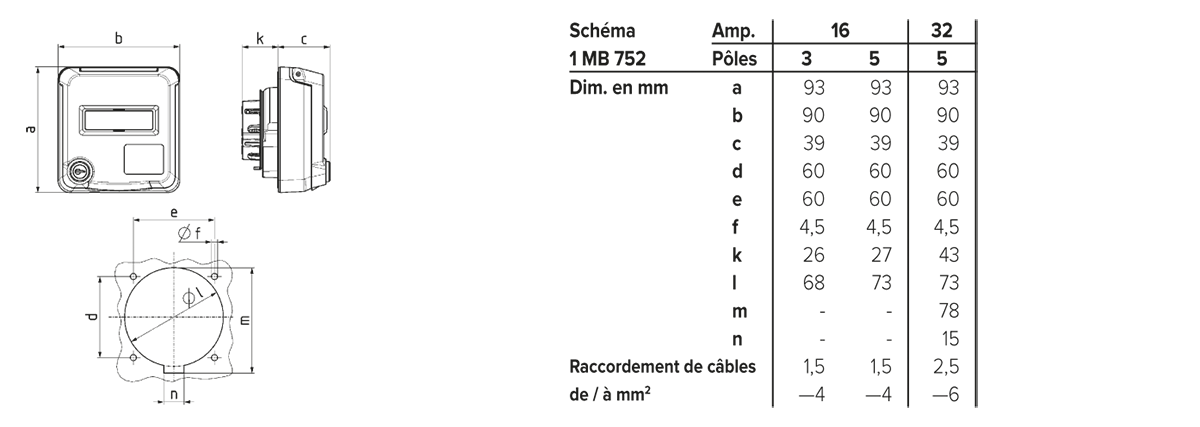 simple, pour tous les socles encastrés et les socles de prises de courant semi-encastrés Cepex 16 A et 32 A, pour l’installation d’une seule prise de courant ou pour une combinaison verticale de plusieurs prises