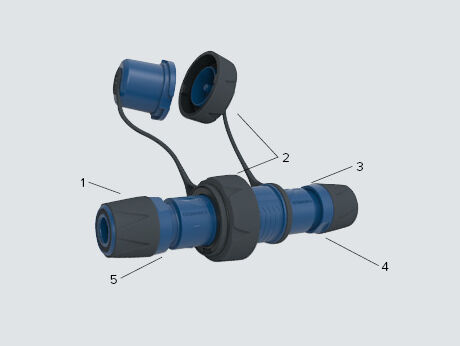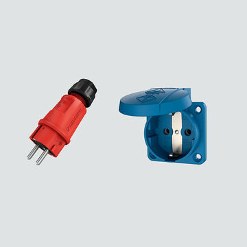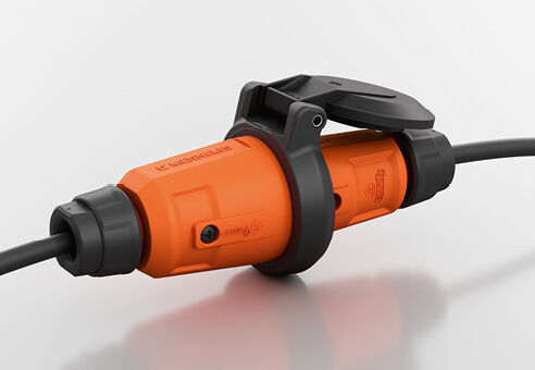 Pour les applications soumises à de fortes contraintes mécaniques ou à une humidité permanente, des fiches et prolongateurs SCHUKO® avec indice de protection IP68 sont disponibles. Ils sont équipés d’une bague à baïonnette et d’un capuchon de protection, et restent étanches même en cas d’immersion lorsqu’ils sont branchés.